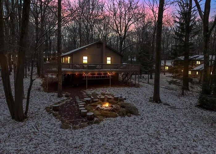 **Welcome to Mountain Holidays-Sleeps 18 Firepit Bar & Gameroom** in the picturesque setting of Lake Harmony, where ample adventure awaits both indoors and outdoors. This stunning haven accommodates up to 18 guests, making it an ideal choice for large families or groups seeking an unforgettable retreat. With a plethora of amenities, including a games room, firepit, and stunning lake views, every visitor is guaranteed a memorable experience.